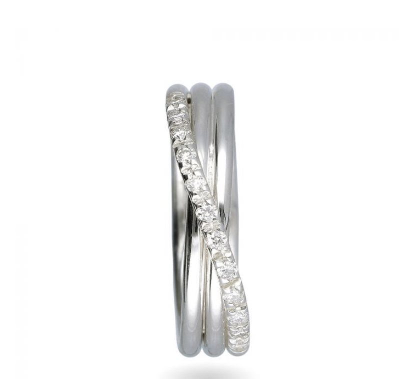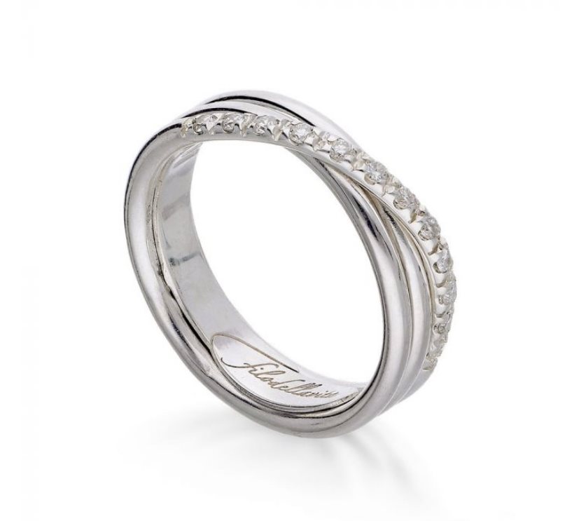 Anello Filodellavita Classic Collection tre fili d’argento 925 arricchito con palladio e 12 diamanti bianchi 0,17 ct.Ms13.