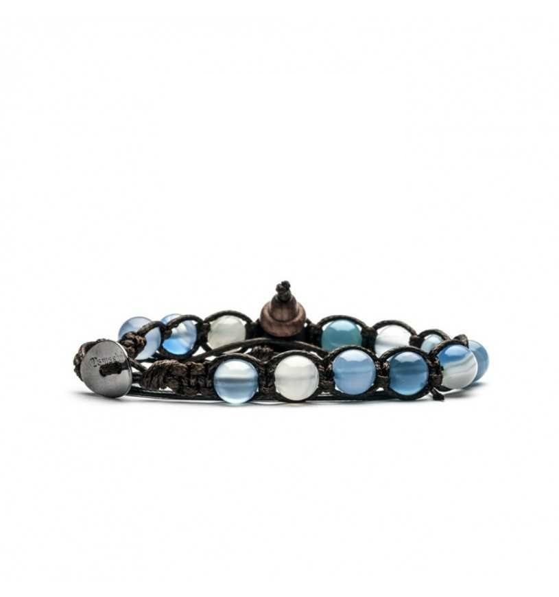Bracciale originale tibetano Tamashii realizzato con pietre naturali AGATA BLU CHIARO STRIATA.