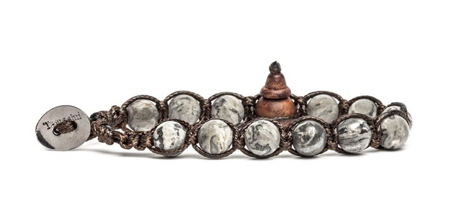Bracciale originale tibetano Tamashii realizzato con pietre naturali DIASPRO PICASSO.