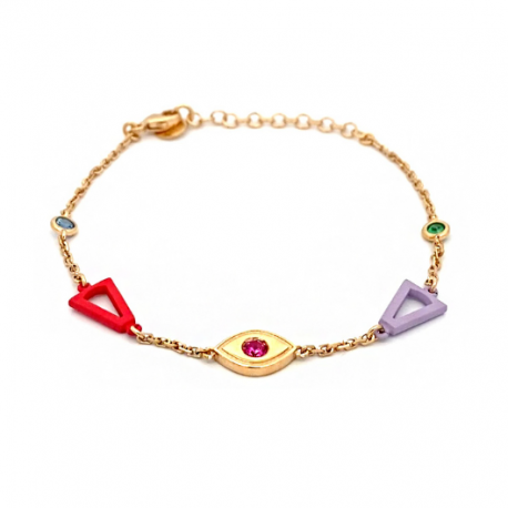 Bracciale in Argento 925 con Placcatura in oro giallo a Bagno di colore lilla e rosso rubino Zirconi Lunghezza 18 cm Senza Nichel.