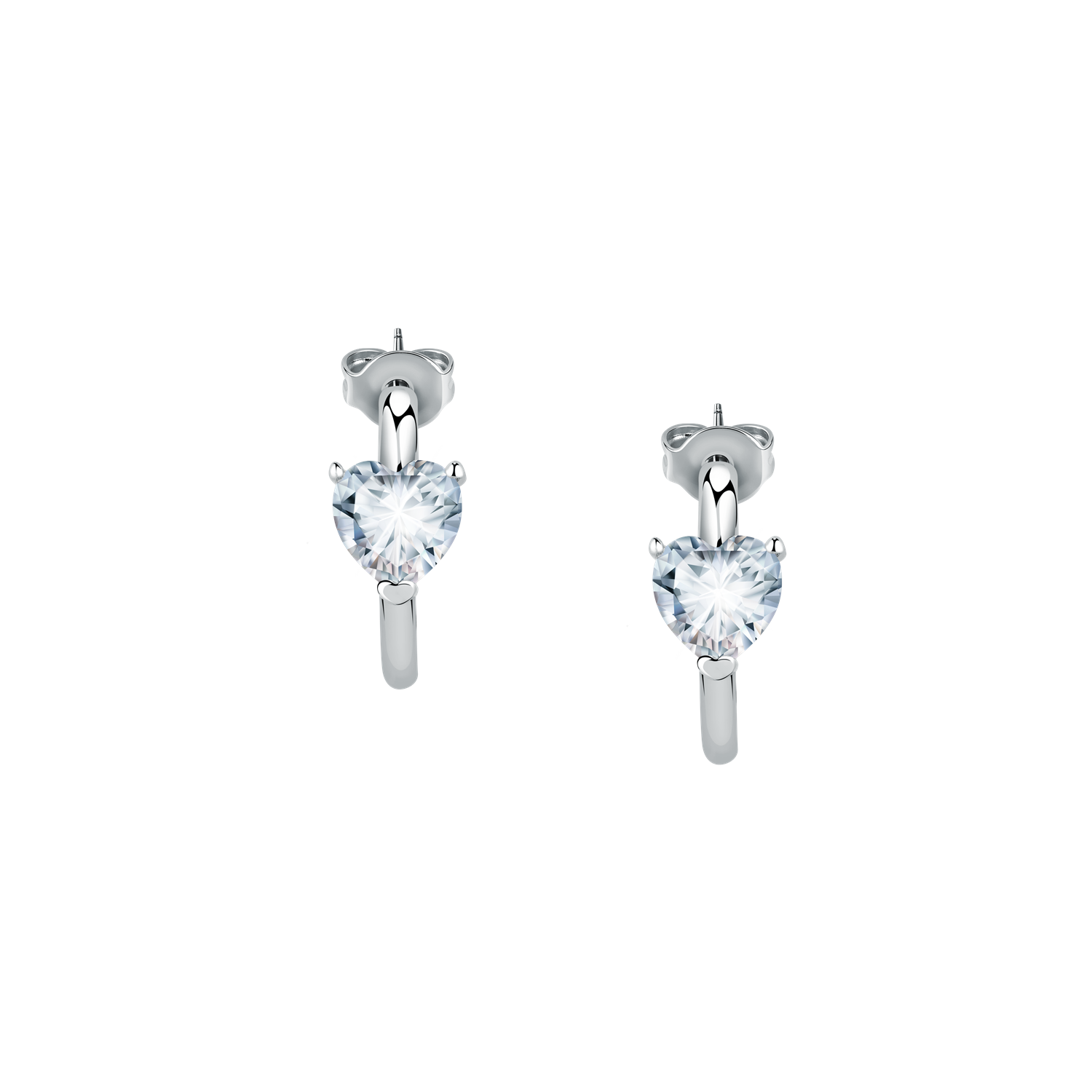 Orecchini First Love Silver Orecchini in Rodio con zircone bianco a forma di cuore. Dim. 18 mm