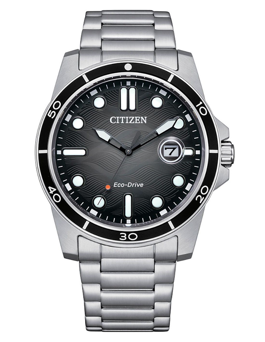 Orologio solo tempo uomo collezione MARINE 1810. Cassa in acciaio satinato, ghiera nera con cifre in acciaio lucido, fondo a vite. Movimento Eco Drive (a carica luce infinita) con riserva di carica 240 giorni. Quadrante nero sfumato indici e lancette ad alta luminosità. Vetro minerale con lente sulla data. Bracciale regolabile in acciaio satinato, chiusura deployante con pulsanti. Impermeabile 10 bar (atm). Scatola e libretto istruzioni originale. Garanzia 5 anni.